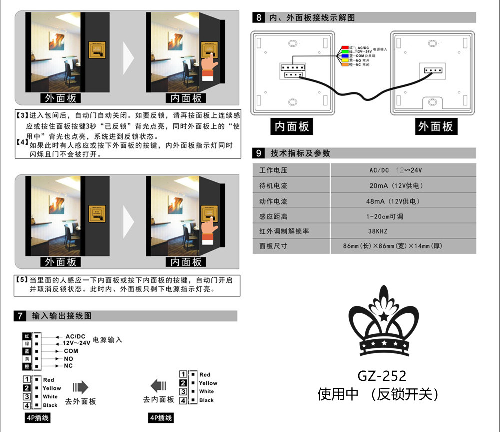 非接触式专用房开关GZ-238M