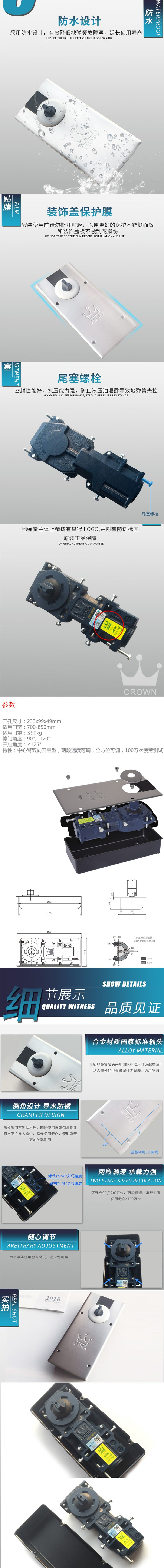 正品皇冠G-322玻璃门地弹簧