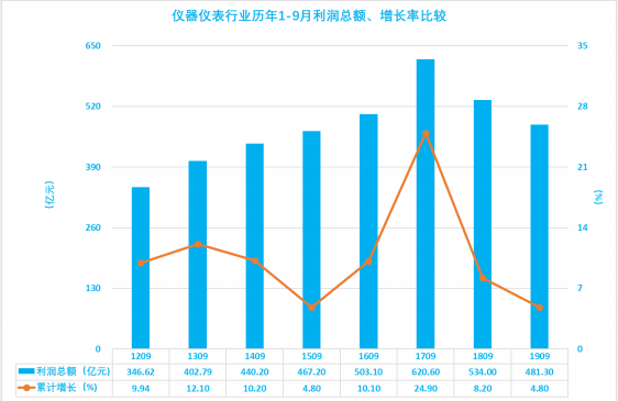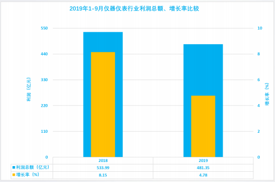 近日,上海行业协会发布了2019年1-9月仪器仪表行业经济运行概况。1-9月仪器仪表行业实现利润总额481.35亿元,同比增长4.78%;利润净增21.95亿元,比上年的40.24亿元减少45.46%。