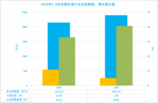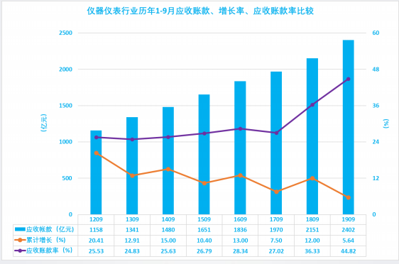 2.9 仪器仪表行业历年1-9月应收账款、增长率、应收账款率比较