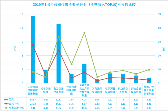 1.19 2019年1-9月仪器仪表主要子行业(主营收入TOP10)亏损额比较