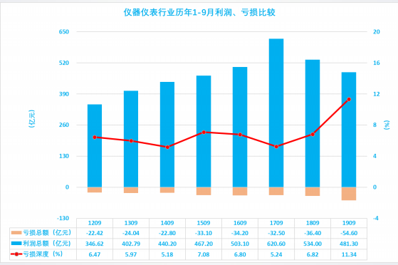 1.2 仪器仪表行业2019年1-9月利润总额波动分析