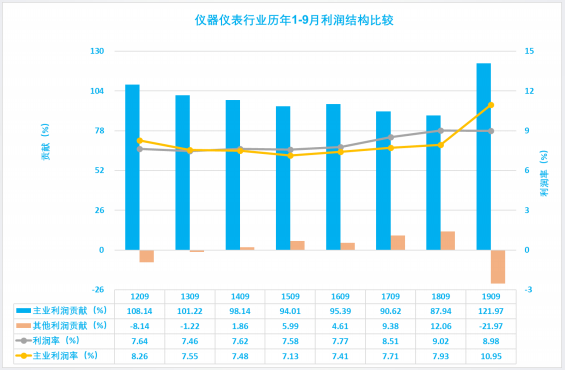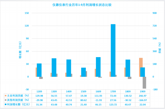 1.3.1 仪器仪表行业2019年1-9月主业利润波动分析